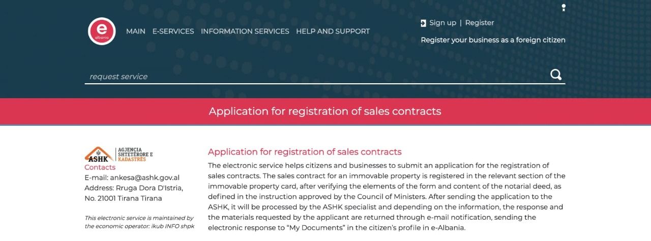 图片说明:在线登记阿尔巴尼亚房地产买卖合同。