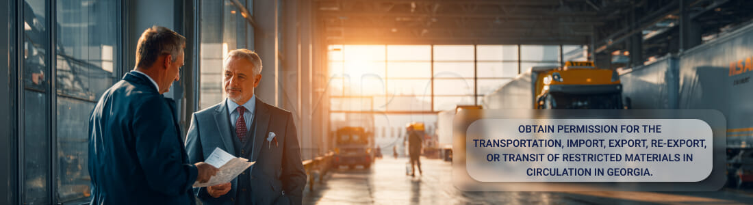 Подготовительный этап, позволяющий получить разрешение на транспортировку, импорт, экспорт, реэкспорт или транзит ограниченных материалов в обиходе в Грузии